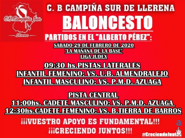 AGENDA DEL PRÓXIMO FIN DE SEMANA, CON "LA MAÑANA DE LA BASE" Y CON PARTIDO FUERA DE CASA DE NUESTROS SENIORS "ASESORÍA LLERENA, S.L. Y TRASUR, S.L.-TRACTORES KUBOTA", YA CLASIFADOS PARA LOS PLAYOFFS POR EL TÍTULO.