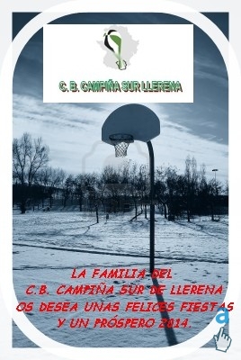 LOS QUE FORMAMOS PARTE DE ESTA FAMILIA, QUE ES EL C.B. CAMPIÑA SUR DE LLERENA, OS DESEAMOS A TODOS UN PRÓSPERO AÑO 2014. QUE SE CUMPLAN TODOS LOS BUENOS DESEOS, Y QUE DISFRUTEMOS DE MUCHO Y BUEN BALONCESTO.