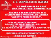 AGENDA DEL PRÓXIMO FIN DE SEMANA, EL SÁBADO CON "LA MAÑANA DE LA BASE" EN EL "ALBERTO PÉREZ" PARA LOS EQUIPOS FEMENINOS DE LA BASE, LOS MASCULINOS JUGARÁN EN VILLAFRANCA. EL SÉNIOR MASCULINO JUGARÁ EN LA PISTA DEL C.B....